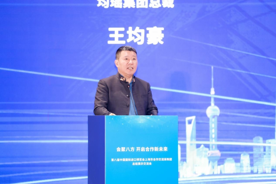 会上,上海市合作交流采购团副团长、上海市各地在沪企业(商会)联合会会长、均瑶集团总裁王均豪作2025年度采购团工作报告。
